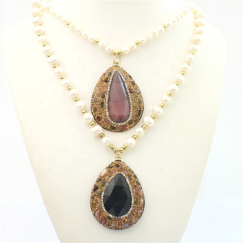 CH-HDN0734高級淡水パールチェーンネックレス、クリスタルストーンペンダントジュエリー、絶妙な女性のジュエリー卸売