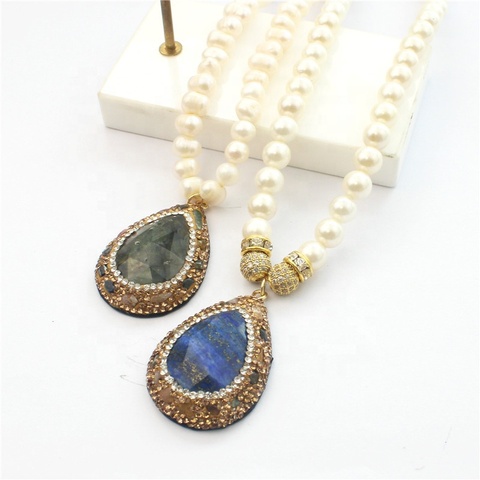 CH-HDN0734 collana di catena di perle d'acqua dolce di lusso, gioielli con ciondolo in pietra di cristallo, commercio all'ingrosso di gioielli da donna squisiti