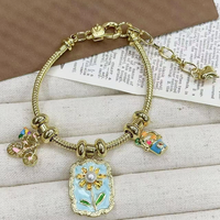 CH-JDT0583卸売スタイリッシュなエナメルペンダント女性用ブレスレット金花チャームペンダント調整可能パーティー用ベストセラー