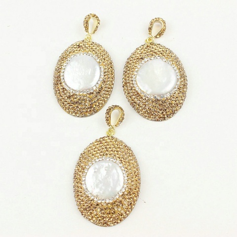 CH-HDP0808美しいクリスタルパールペンダント、売れ筋淡水パールチャーム、ネックレスコンポーネント卸売ジュエリー