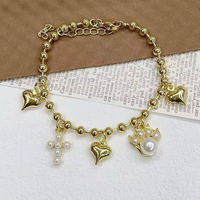 CH-JDT0581可愛いペンダントブレスレットパールクロス/パールキャットクロー金メッキ銅ビーズブレスレット調整可能ブレスレット