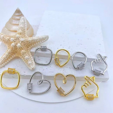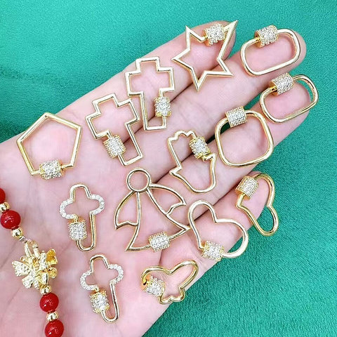 CH-LHP2152 CZ 하트/스타/크로스 걸쇠 금도금 CZ 타원형 모양 랍스터 걸쇠 도금 구리 매력 목걸이 팔찌 만들기
