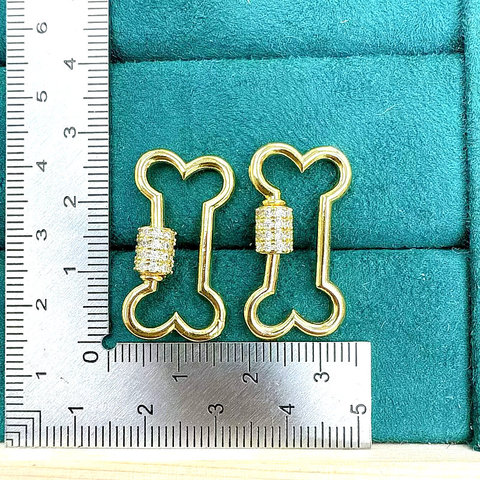 CH-LHP2253 사랑스러운 CZ 개 뼈 걸쇠 금도금 CZ 뼈 모양 랍스터 걸쇠 실버 목걸이 팔찌 만들기에 대 한 도금 매력