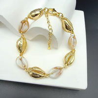 CH-HDT1021 Pretty Summer Sea Acrylic Conch Charm Plated Bracelet,Gold Plated Copper Conch Bracelet,Adjustable Acrylic Bracelet